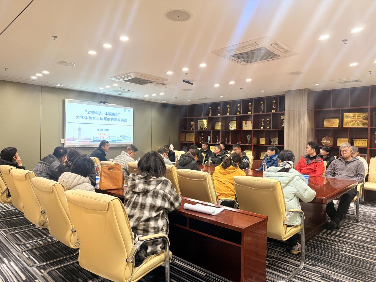 近日,体育部特邀南京工业大学体育学院副院长李国教授来校,作题为《“立德树人,体教融合”——大学体育育人体系的构建与实践》的专题报告。报告会由体育部党委书记、主任刘苏主持。